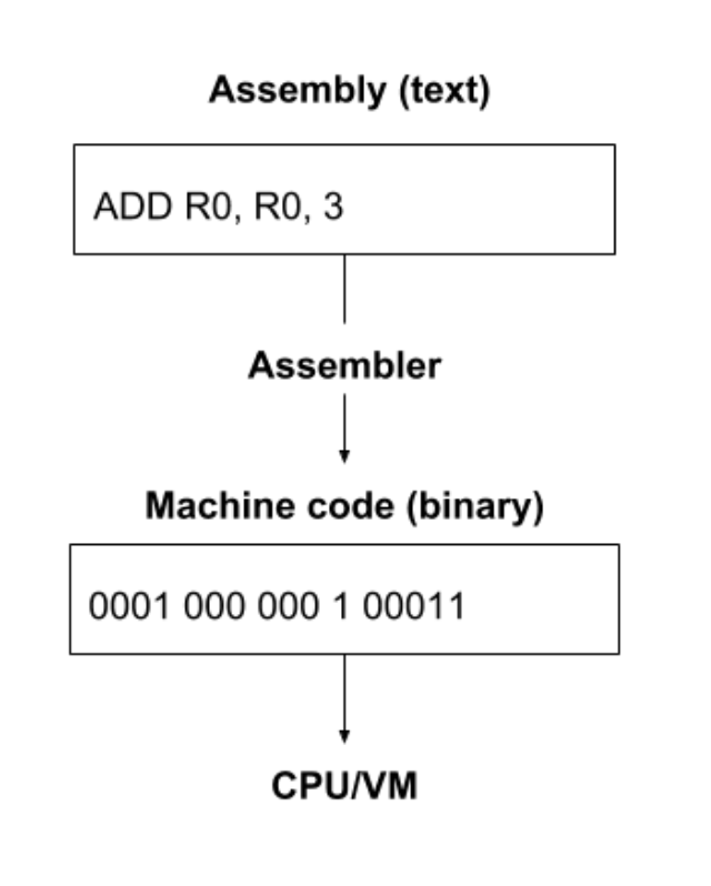 注:虽然在开发中编译器(compiler)和汇编器(assembler)的角色是类似的,但二者是两个不同的工具。汇编器只是简单地将程序员编写的文本编码(encode)成二进制格式 ,将其中的符号替换成相应的二进制表示并打包到指令内。