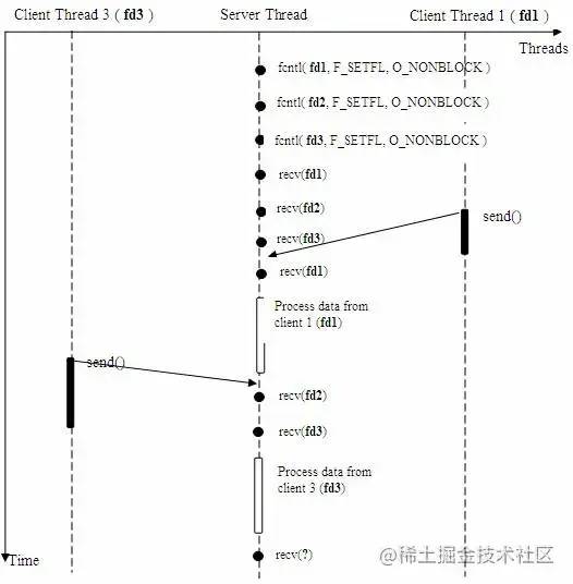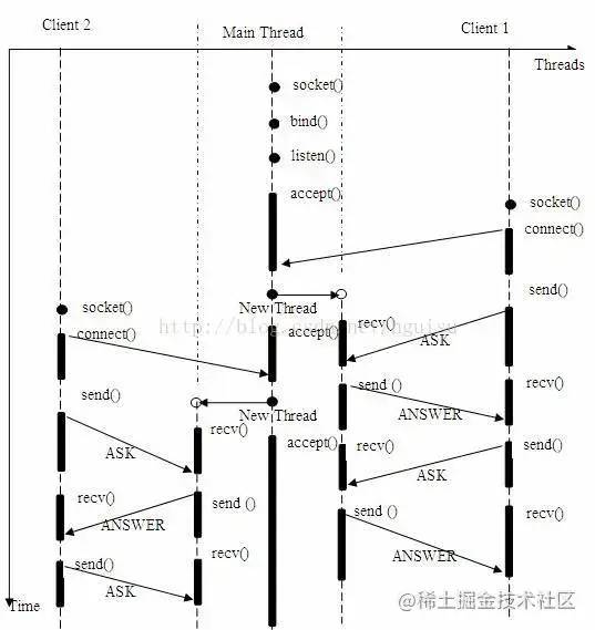 实现非常的 简单,但是存在一个问题,阻塞导致线程无法执行其他任何计算,如果是在网络编程背景下,需要使用多线程提高处理并发的能力。