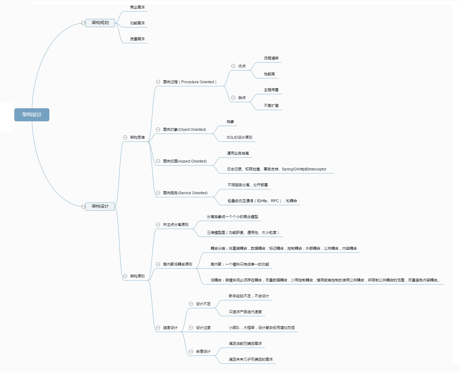 - 架构设计要做的是让关注点分离,并且对每个关注点进行设计一定的结构,该结构都有利于解答这一个关注点所定义的问题;