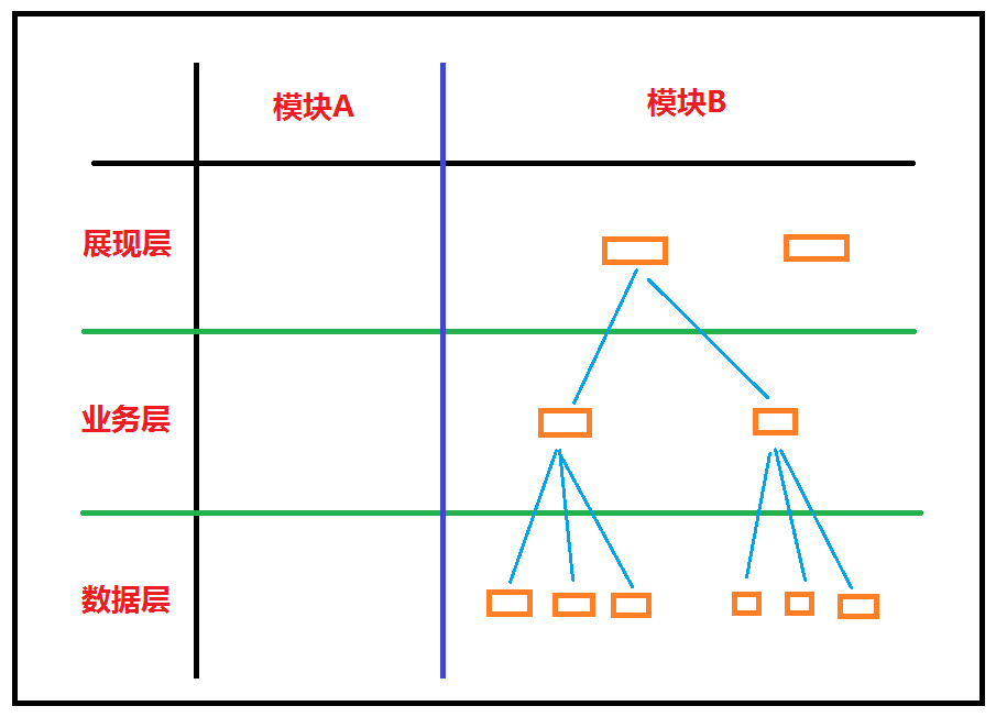 在横向来看,我们将业务进行了分块,保证块与块之间相互之间没有任何依赖,保证了绝对的解耦。从纵向来看,每个层级之间的依赖很明显是无法避免的,所以我们可以保证上层仅依赖下层的接口,从而达到降低其耦合度的目的。