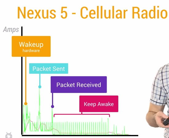 使用WakeLock或者JobScheduler唤醒设备处理定时的任务之后,一定要及时让设备回到初始状态。每次唤醒无线信号进行数据传递,都会消耗很多电量,它比WiFi等操作更加的耗电,详情请关注http://hukai.me/android-training-course-in-chinese/connectivity/efficient-downloads/efficient-network-access.html