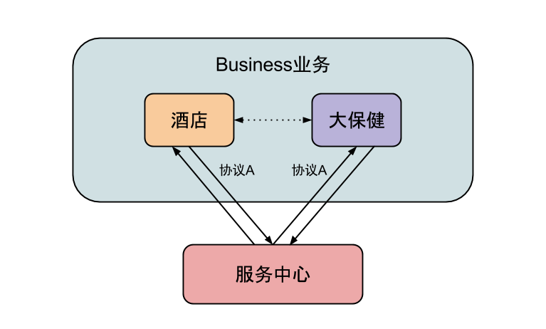 对于「业务 A 」来说,「Local: 业务 B」也是服务提供者,但是两者不存在依赖关系,所以只能通过协议来通信。