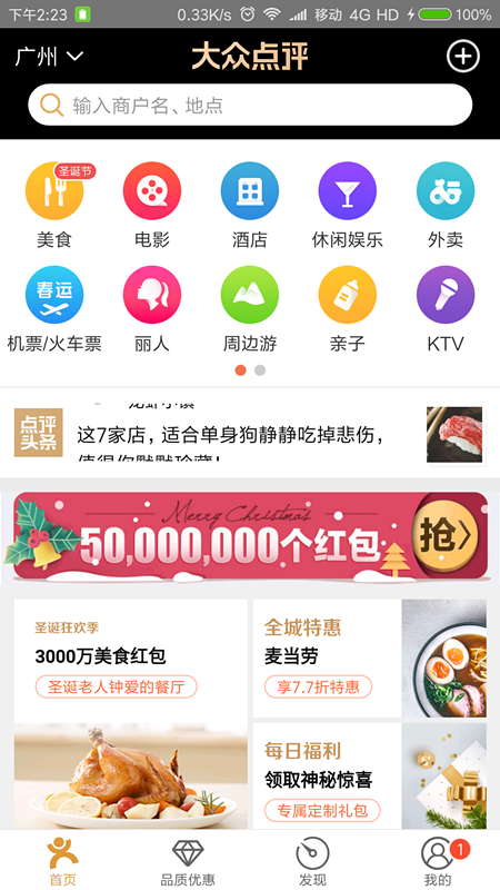 例如,大众点评,首页已经展示了好多个业务:美食、电影、酒店、休闲娱乐、外卖、机票/火车票.....这种多业务APP,通常会把业务尽量展示在首页,这种APP大的业务很好划分。美食、电影这类看起来完全不同的业务,笔者称为Business业务。