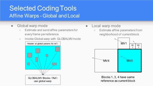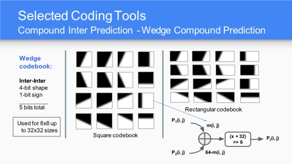 帧间预测,三大亮点:支持更多参考帧、动态运动矢量参考、亚像素滤波;三大帧间预测模式:单帧帧间模式、复合帧间模式和复合帧内帧间模式;OBMC运动补偿模式;仿射变换。