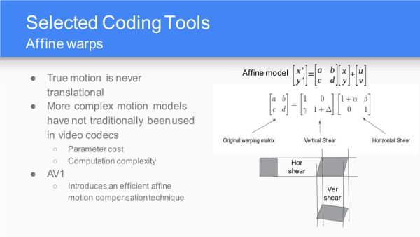 AV1优越的性能从传统角度来看得益于更好的预测模式、变换模式等;以及在运动上的非平移运动模式;编码恢复模式;学习图像压缩的非线性变换等等。