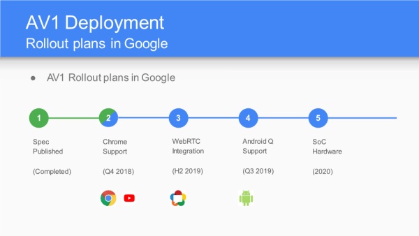AV1在Google的推进计划,需要关注的是浏览器支持、WebRTC支持、Android支持、硬件实现的时间点。