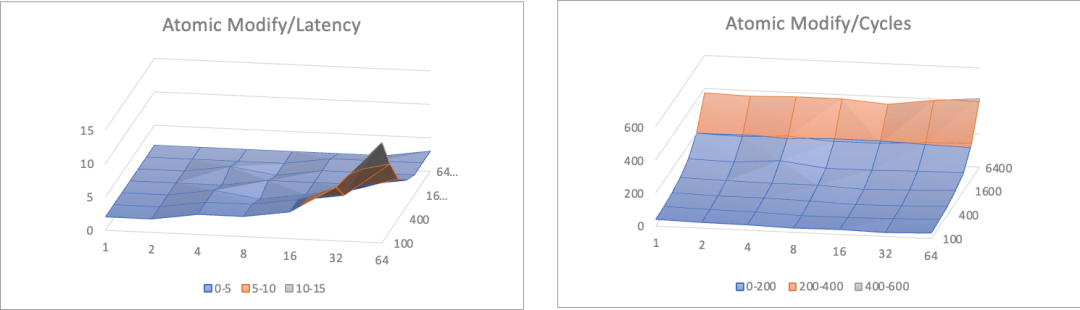 从上文针对临界区保护的多种方法所做的实验,还可以发现一个现象。随着临界区逐渐减小,保护措施开销随线程数量增加而提升的趋势都预发显著,即便是设计上效率和参与线程数本应无关的Wait Free级别也是一样。这对于临界区极小的并发计数器场景,依旧会是一个显著的问题。那么我们就先从锁和原子操作的实现角度,看看这些损耗是如何导致的。
