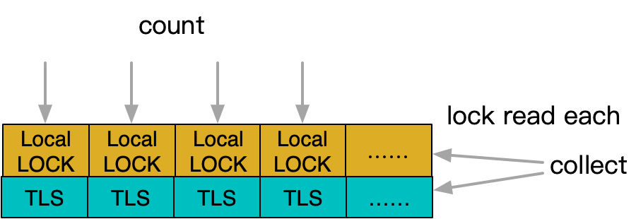 因此实际设计中,锁可以创建很多,甚至非常多,只要能够达到足够细粒度拆解冲突的效果。这其中最典型的就是brpc中计数器框架bvar的设计。
