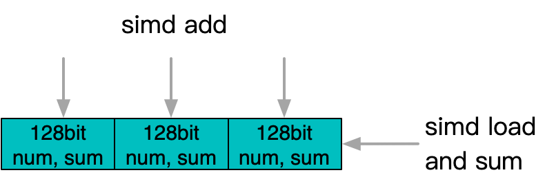 这是一个非连续内存上进行累加计算的例子,随外层迭代会跳跃式缓存行访问,内层循环在连续缓存行上进行无依赖的计算和访存操作。