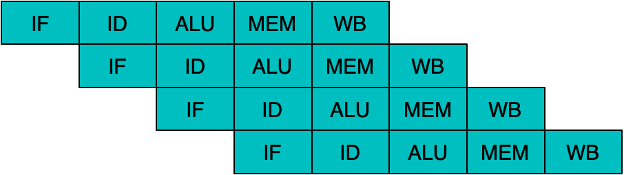另一个重要的单线程内并行能力就是乱序执行OoOE(Out of Order Execution)。经典教科书上的CPU流水线机制一般描述如下(经典5级RISC流水线)。