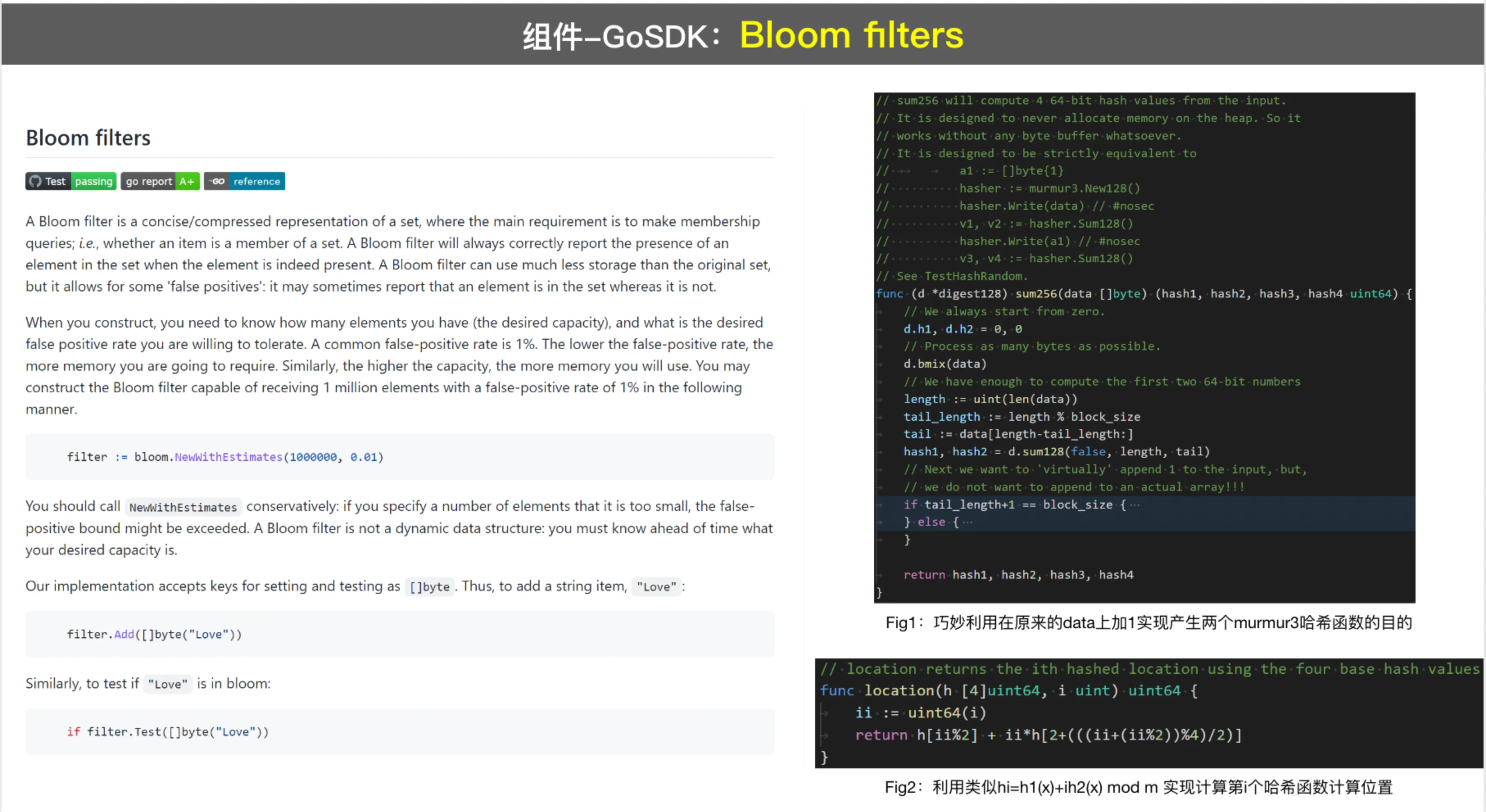 在了解了布隆过滤器原理后,结合一份源码,让我们看一下一个BF组件的内部实现。源码分析部分就不展开了,感兴趣的可以拓展阅读BloomFilter-Golang源码分析。