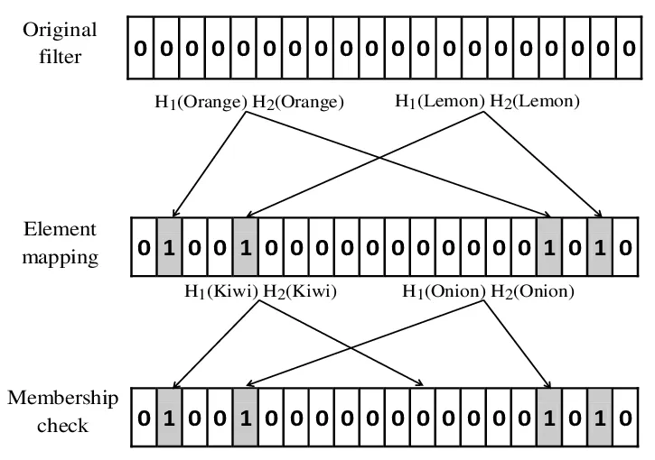 从这个场景中我们可以发现,当缓存miss时,需要向其他所有Proxy发送请求,从而优先获取其他proxy缓存的内容,减少外部网络访问。一个很容易想到的优化策略就是,如果一个Proxy要是知道其他Proxy都缓存了哪些链接,就可以直接向目标Proxy发起请求而不用向每一个Proxy都发起请求。那么问题就转化为了,一个Proxy如何才能存储其他Proxy的缓存链接信息?如果全量存储,势必非常耗费空间。因为一个URL少则十几个字节,多则几百个字节,而且数量也非常多。这些信息要是存内存的话又太耗费资源,存磁盘的话访问速度又太慢。