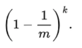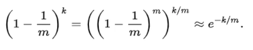 以下为条件独立情况下的BF计算过程,并不复杂,稍微懂一点概率论的应该都能看懂。假设某BF的哈希空间大小为m,使用的哈希函数为k个。能得出: