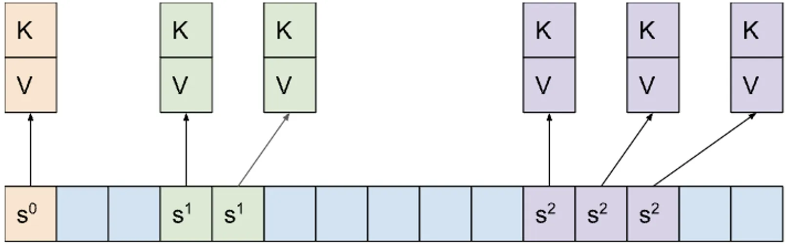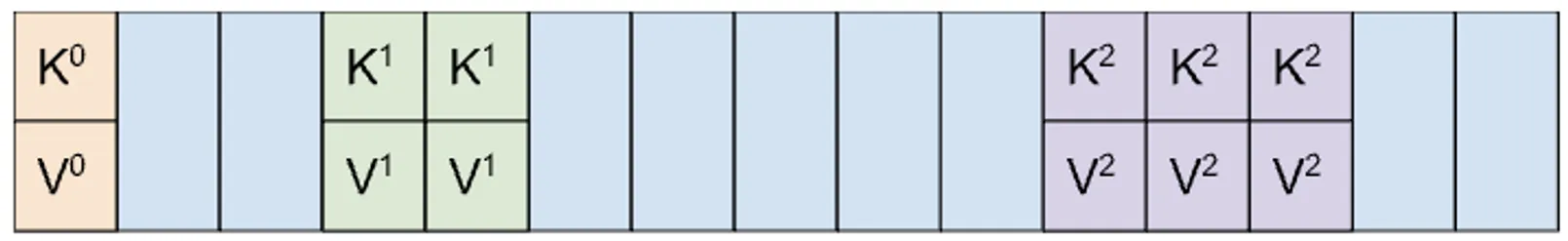 google absl::flat_hash_map采用开放寻址法(open addressing)解决hash碰撞,并使用二次探测(quadratic probing)方式。absl::flat_hash_map改进了内存布局,将所有pair放在一段连续内存中,将hash值相同的多个pair放在相邻位置,如图2所示。