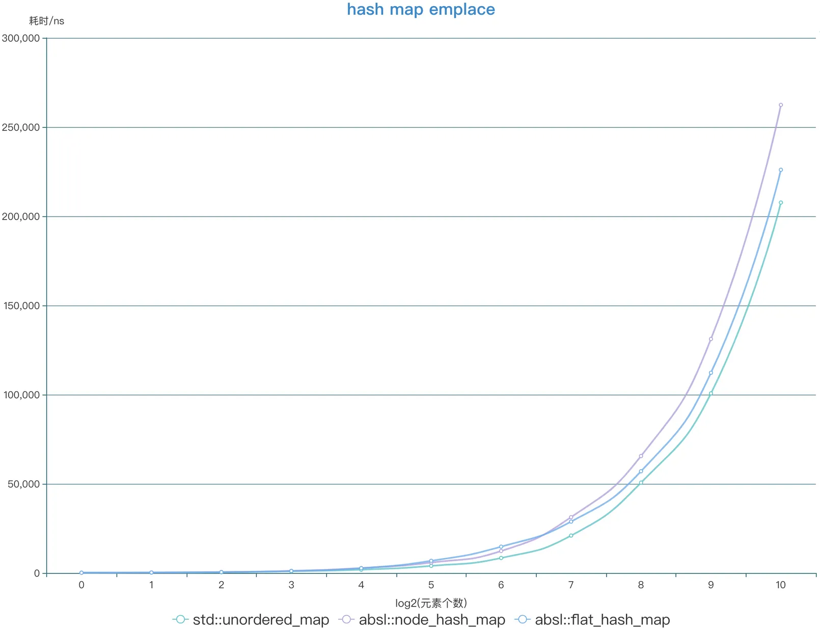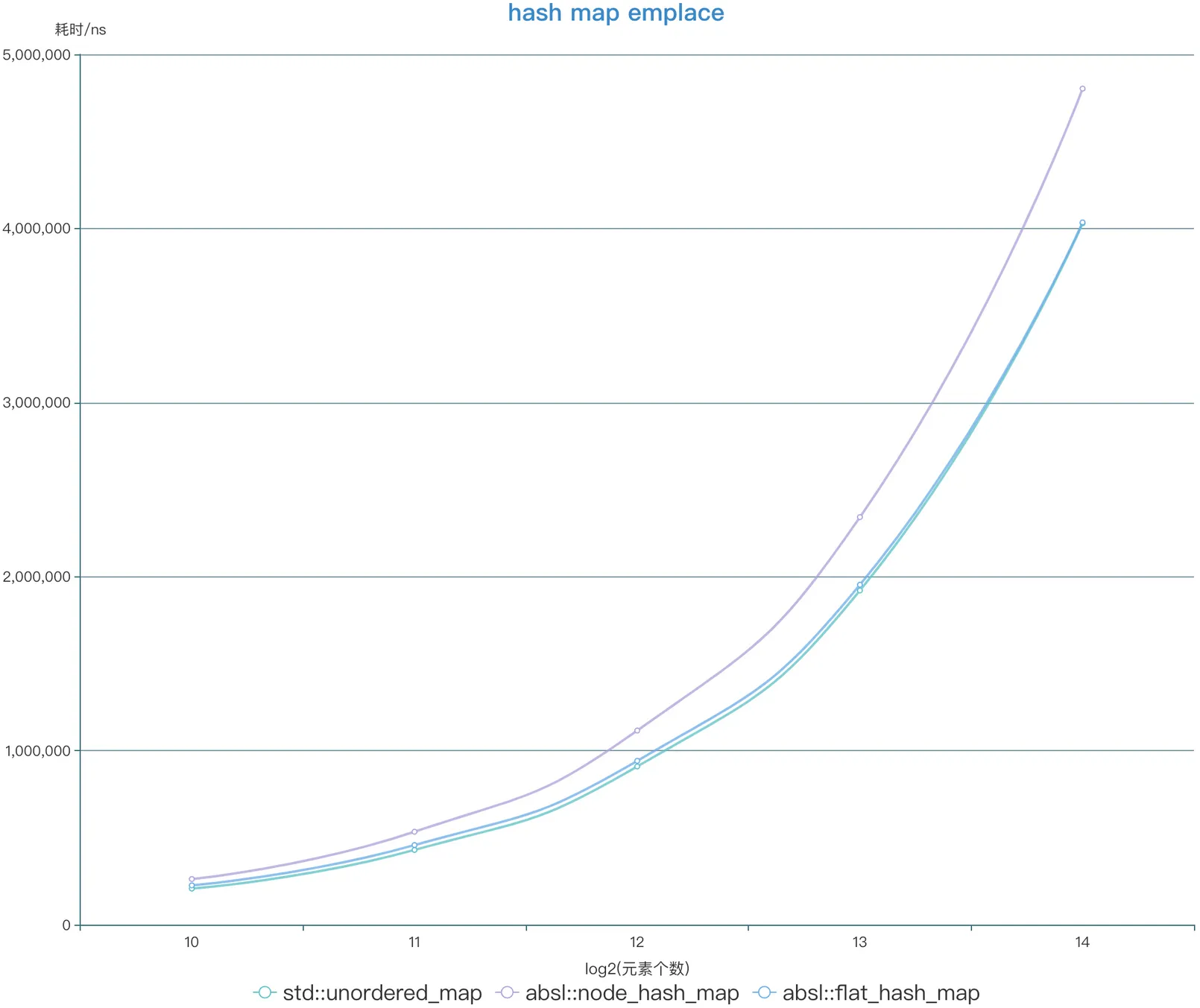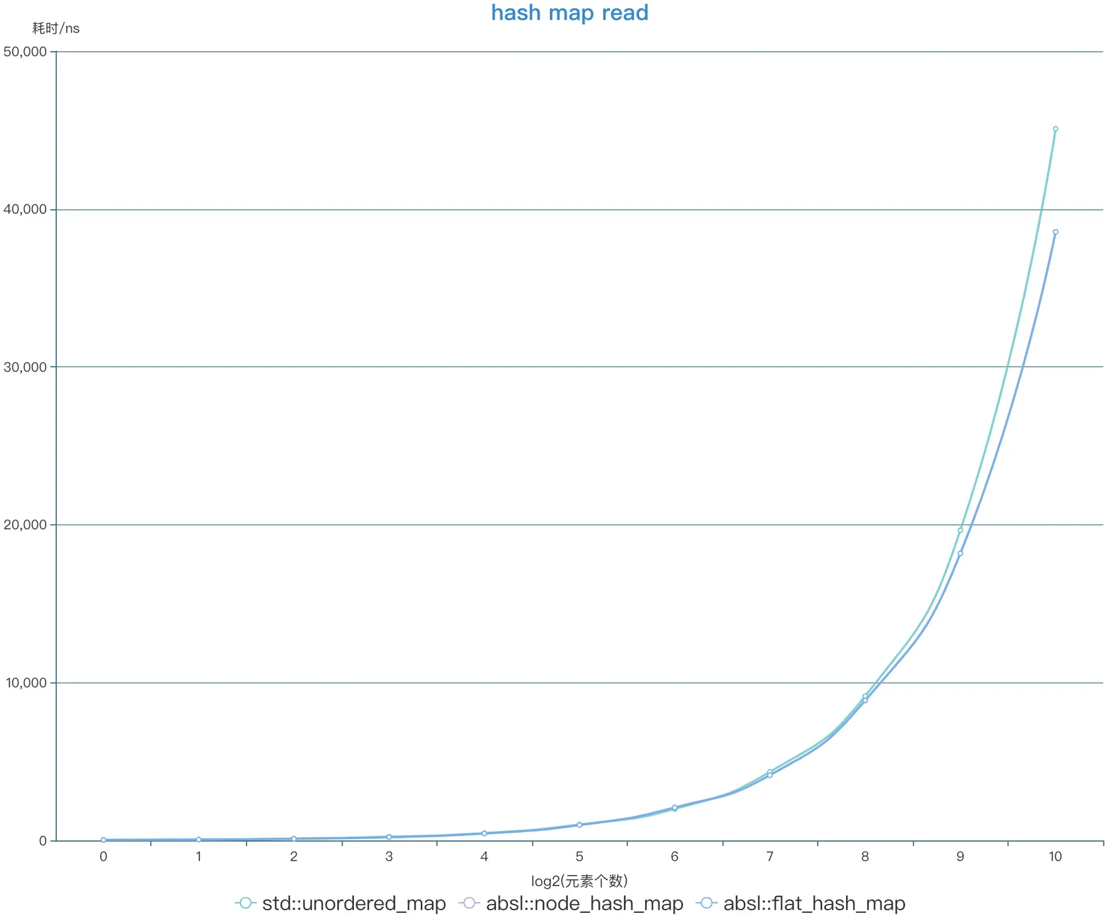从测试结果可以看出,写操作耗时:std::unordered_map < absl::flat_hash_map < absl::node_hash_map,absl::flat_hash_map比std::unordered_map耗时平均增加9%;读操作耗时:absl::flat_hash_map <absl::node_hash_map <std::unordered_map,absl::flat_hash_map比std::unordered_map耗时平均降低20%。