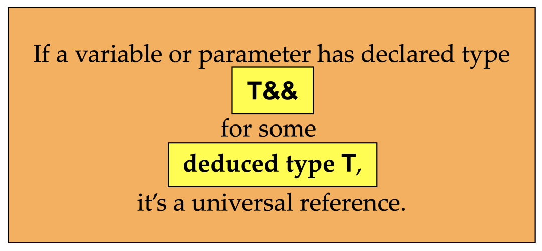 然后我们再说第二个规则:特殊类型推导规则是在特殊的环境下才会产生的推导规则(这好像是一句话废话)。要理解这个,还需要再借助另外一个术语:Universal Reference,我们可以简称URef。这应该是Scott Meyers(Scott Meyers是世界顶级的C++软件开发技术权威之一,他的《Effective C++》,《More Effective C++》你应该听说过)创造的名词。