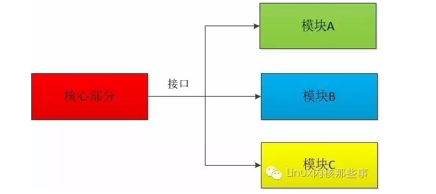 模块化编程 是指程序核心部分定义好功能的接口,而具体的实现留给各个模块去做。举个现实世界的例子:我们可以在电脑的PCI插槽上安装显卡、声卡或者网卡,原因就是这些硬件都按照PCI接口的规范来制造的。 模块化编程也一样,程序核心部分定义好接口,各个模块按照接口的定义去实现功能,然后把各个模块挂载到程序上即可,这个有点像Java的面向接口编程。如下图: