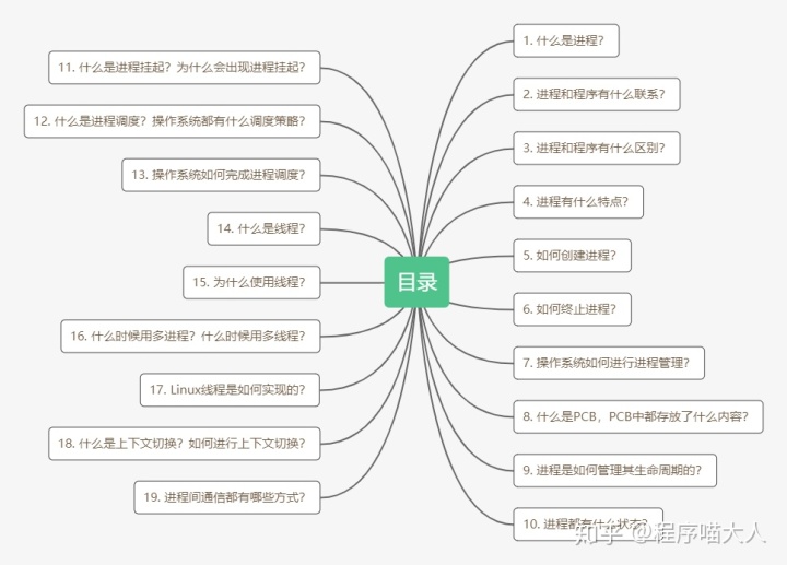文件:显而易见,多个进程可以操作同一个文件,所以也可以通过文件来进行进程间通信。关于进程和线程的知识点介绍就到这里,程序喵为了写本文花费了半月以上时间,相信你弄懂这19个问题,面试不用愁!