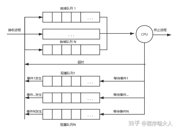 我们知道进程不可能一直处于可运行的状态。假设A进程需要读取磁盘中的文件,这样的系统调用消耗时间较长,进程需要等待较长的时间才能执行后面的命令,而且等待的时间还是不可估算的,这样的话进程还占用 CPU 就不友好了,因此内核就会将其更改为其他的状态并从 CPU 可运行的队列移除。