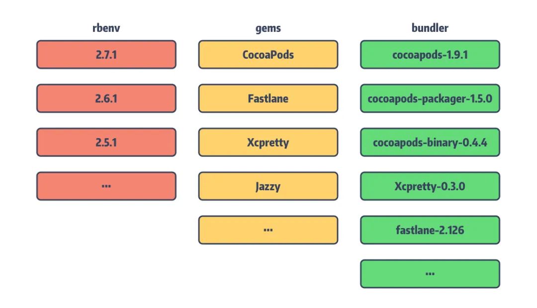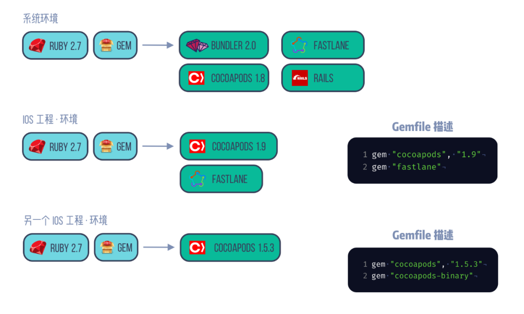我们知道 CocoaPods 是通过 Ruby 语言实现的。它本身就是一个 Gem 包。理解了 Ruby 的依赖管理有助于我们更好的管理不同版本的CocoaPods 和其他 Gem。同时能够保证团队中的所有同事的工具是在同一个版本,这也算是敏捷开发的保证吧。
