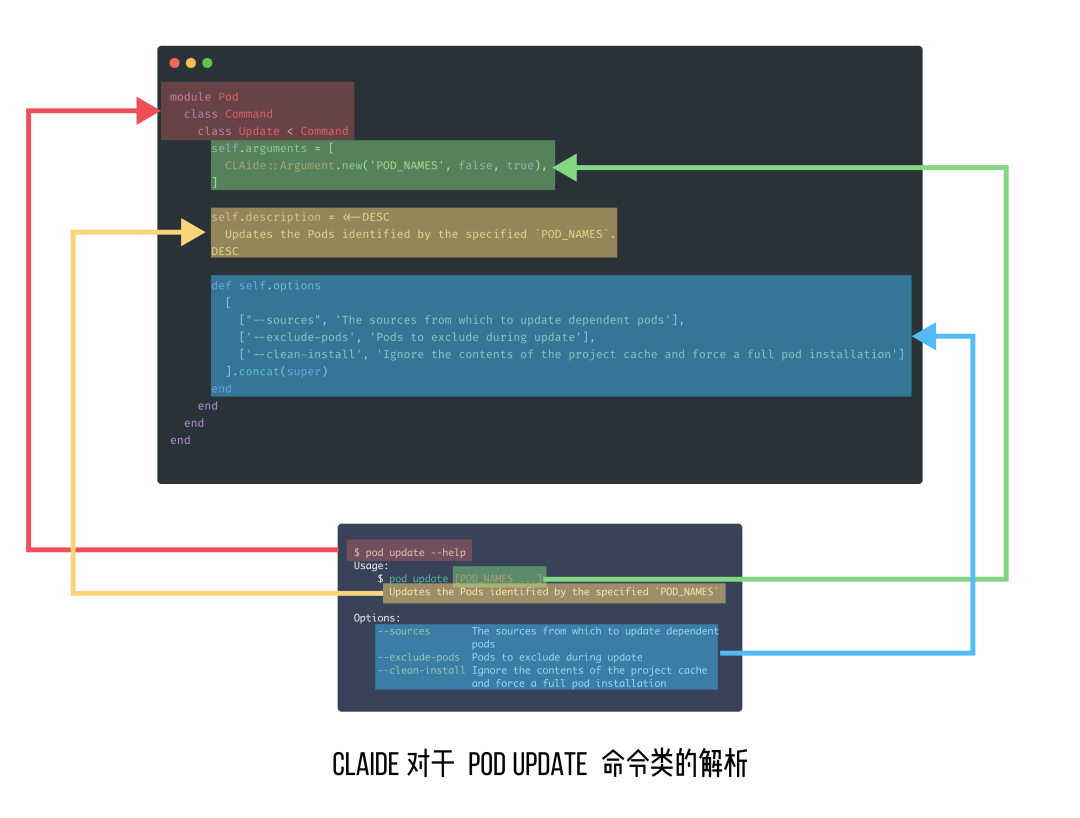 对应的, pod update 这个命令的逻辑在 CLAide 中就是如下描述: