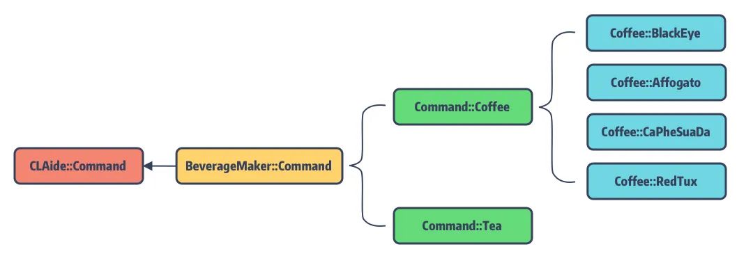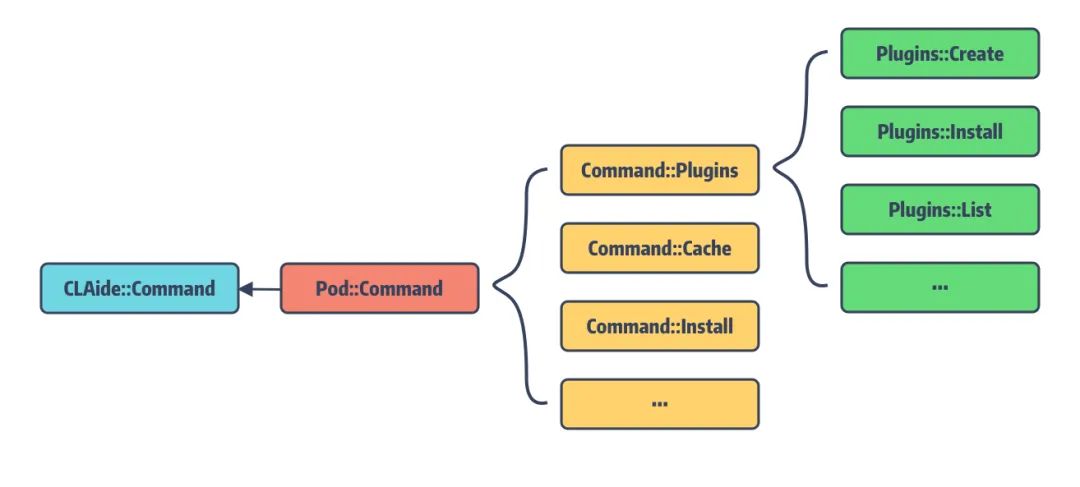pod 命令正是由多个 Pod::Command < CLAide::Command 的子类组合而成的 abstract command。