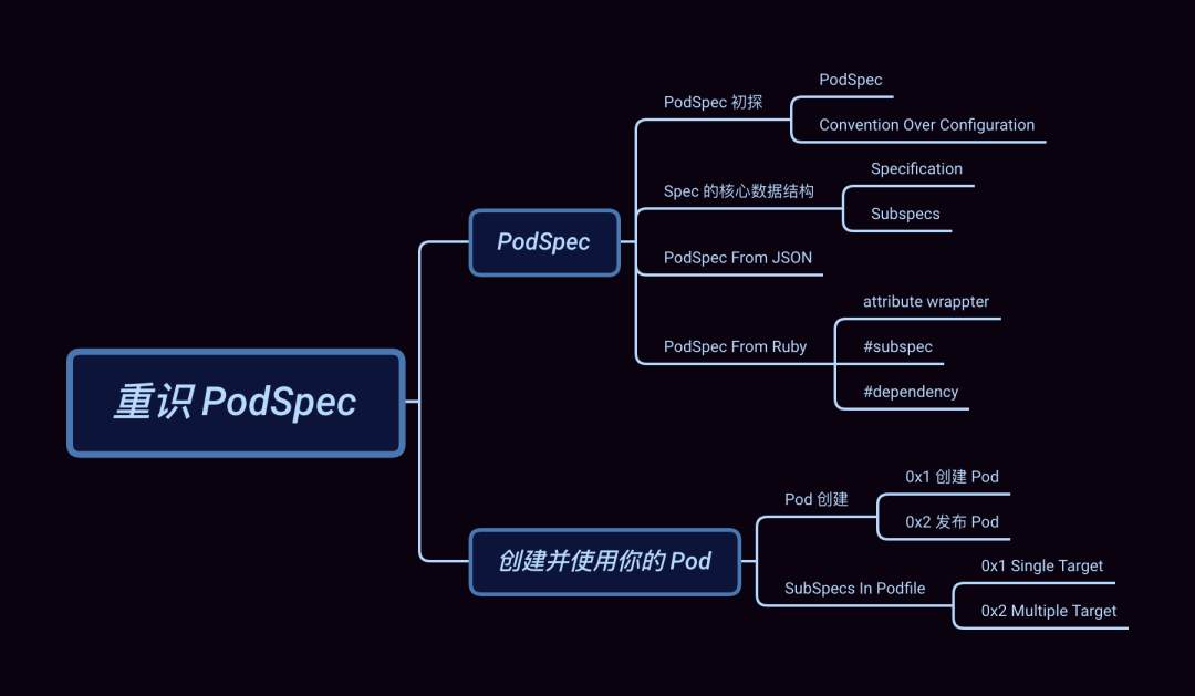 在上文 Podfile 解析逻辑 中(建议先阅读这篇文章),我们以 Xcode 工程结构作为切入点介绍了 Podfile 背后对应的数据结构,剖析了Podfile 文件是如何解析与加载,并最终 "入侵" 项目影响其工程结构的。今天我们来聊一聊 CocoaPods-Core[2]中的另一个重要文件 --- Podspec 以及它所撑起的 CocoaPods 世界。