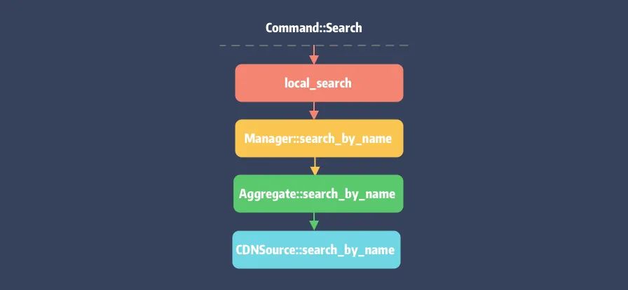 它提供了 Web 查询和本地查询。本地查询则不同于 #search,它需要调用 Aggregate 的 #search_by_name ,其实现同#search 类似,最终也会走到 Source 的 #versions[13] 方法。