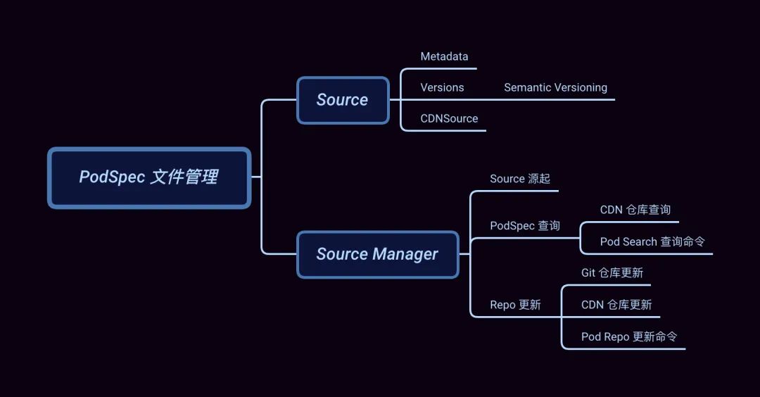 CocoaPods-Core 这个库之所以被命名为 Core 就是因为它包含了 Podfile -> Spec Repo -> PodSpec这条完整的链路,将散落各地的依赖库连接起来并基于此骨架不断地完善功能。