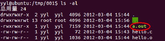 再看我们的目录下,就多了目标文件a.out。