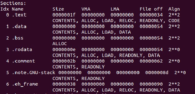 查看目标文件的命令是 objdump -h a.out