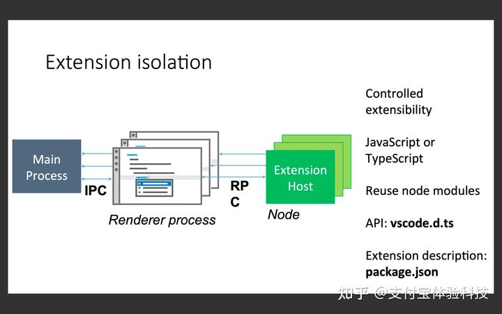 - 插件进程不能直接访问渲染进程,插件也就不能访问 UI 内容,只能通过框架提供的API依靠进程通信来访问有限的内容,安全稳定,界面一致。非常适合 vscode 这种界面设计要求高度统一并且稳定的产品。毕竟用户肯定不想装个插件页面就变得不一样不知道怎么用了的意外。如果实在是要有灵活性还有 webview 能力的兜底。