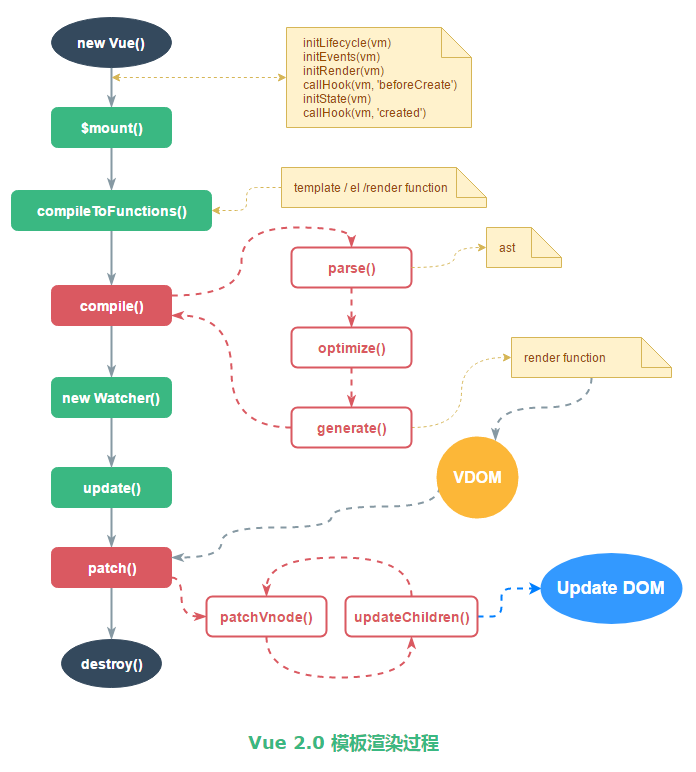 2、diff 差异,patchVnode 是对比模版变化的函数,可能会用到 diff 也可能直接更新。