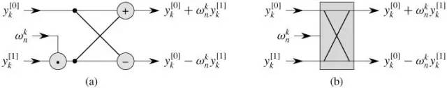 有人这样解释蝶形算法:对于N(2的x次方)点的离散信号,把它按索引位置分成两个序列,分别为0,2,4,....,2K(记为A)和1,3,5,....,2K-1(记为B),由傅立叶变换可以推出N点的傅立叶变换前半部分的结果为A+B*旋转因子,后半部分的结果为A-B*旋转因子。于是求N点的傅立叶变换就变成分别求两个N/2点序列的傅立叶变换,对每一个N/2点的序列,递归前面的步骤,直到只有两点的序列,就只变成简单的加减关系了。把这些点的加减关系用线连接,看上去就是个蝶形。ok,更多可参考算法导论第30章。