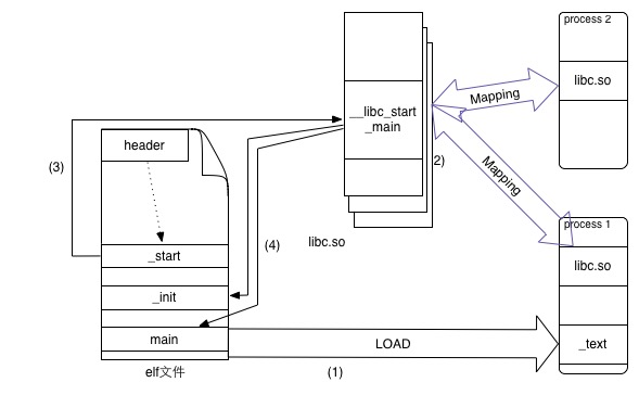 _text)中。 - 如果有依赖的动态链接库,会调用动态链接器进行库文件的地址映射,动态链接库的内存空间是被多个进程共享的。