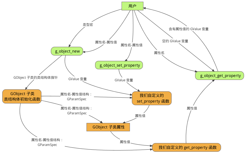 g_object_new 用于构建对象的实例,虽然其内部实现非常繁琐和复杂,但这是 GObject 库的开发者所要考虑的事情。我们只需要知道 g_object_new 可以为对象的实例分配内存与初始化,并且将实例的引用计数设为 1。