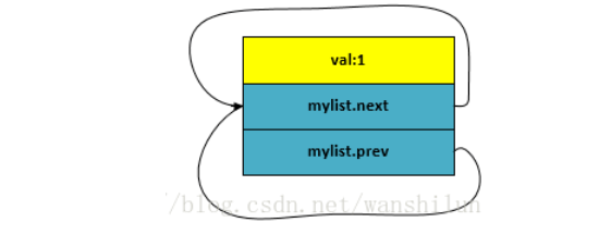 这样mylist 就prev 和 next指针分别指向mylist自己了,如下图: