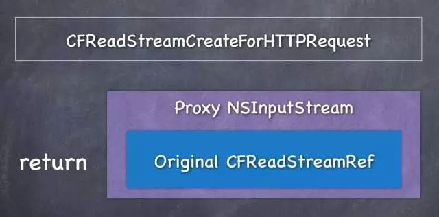 // 将 CFReadStreamRef 转换成 NSInputStream,并保存在 XXInputStreamProxy,最后返回的时候再转回 CFReadStreamRef