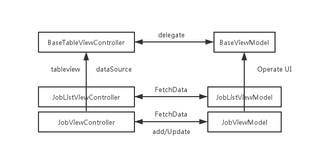 如上图所示,JobListViewController(职位列表)和JobViewController(职位详情)都继承于BaseTableVie