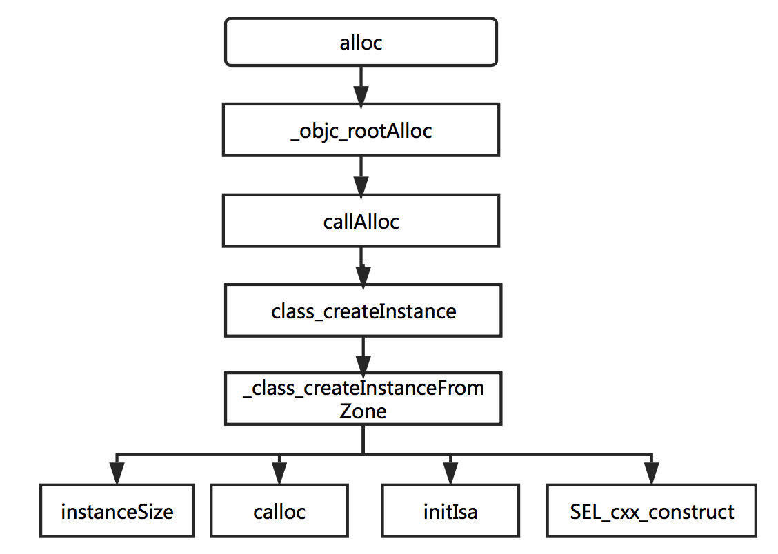 当我们写了一个[Class alloc]命令,会相应的调用_objc_rootAlloc方法,最终会执行_class_createInstanceFromZone方法,如下: