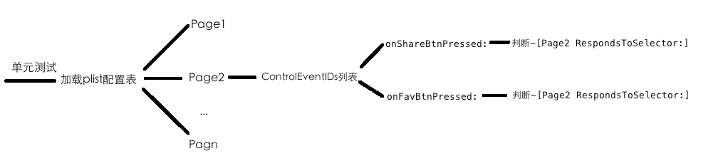 在单元测试中我们首先读取plist配置文件,遍历所有的页面。在一个页面内遍历所有的ControlEventIDs,对每个响应函数名进行respondsTo