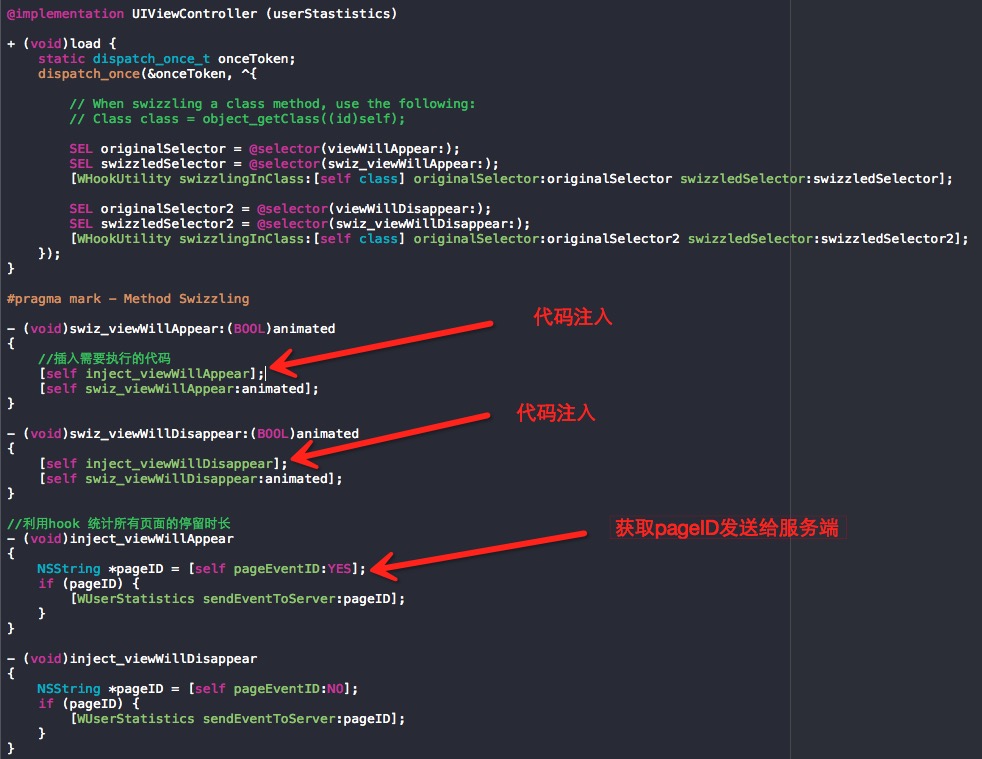 Swizzling把埋点代码集中管理其实也是合理的,有利于专人开发、跟踪及维护。当然以上思路只考虑简单的情形,更复杂的情况就需要变通了,但总体思路就是如此。