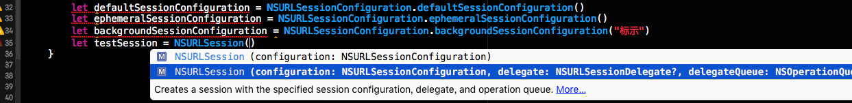 下方的截图就是我们使用Swift语言创建了上述三种类型的会话配置,Session在初始化时可以指定下方的任意一种SessionConfiguration。 具体入校所示: