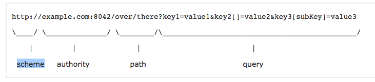 在URL编码时有一定的规则,下方是我们今天主要使用的URL格式的一个规则的一个图解。其他的我们先不说,今天博客中所涉及的主要是下图中Query的部分。从下面我们不难看出,Path和Query之间使用的是?号进行分隔的,问好后边就是我们要传给服务武器的参数了,该参数就是下方的Query的部分。在Get请求中Que ry是存放在URL后边,而在POST中是放在Request的Body中。如果你的参数只是一个key-Value, 那么Query的形式就是key = value。如果你的参数是一个数组比如key = [itme1, item2, item3,……],那么你的Query的格式就是key[]=item1&key[itme2]&key[item3]……。如果你的参数是一个字典比如key = ["subKey1":"item1", "subKey2":"item2"],那么Query对应的形式就是key[subKey1]=item1&key[subKey2]=item2.接下来我们要做的就是将字典进行URL编码。