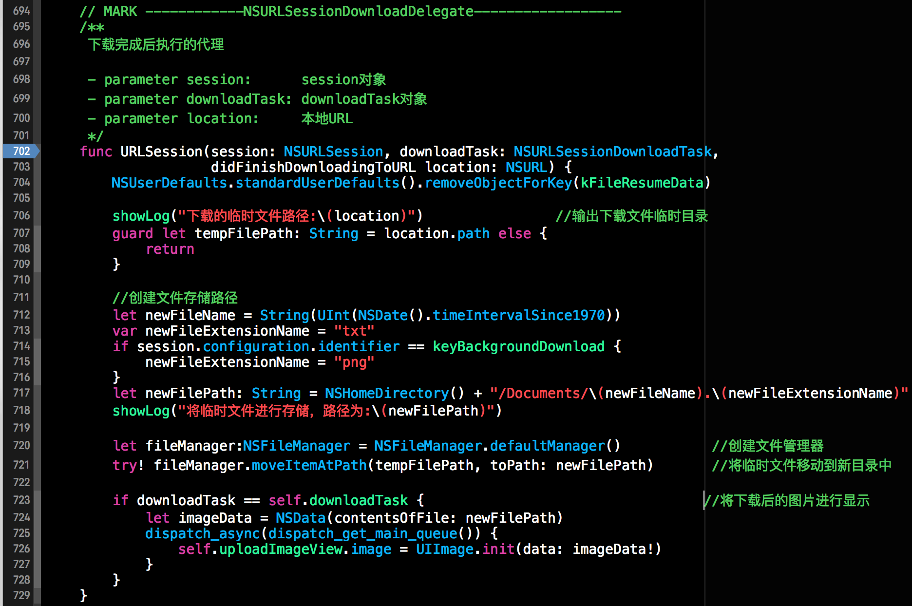 至此,NSURLSessionDownloadDelegate中的三个代理方法已介绍完毕。在你做文件下载时上述回调大部分情况下会被使用到。