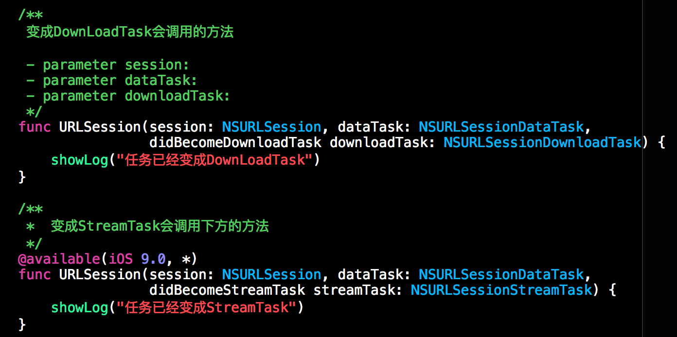 BecomeStream : 将Data Task的响应转变为DownloadTask,会执行NSURLSessionStreamDelegate代理中相应的方法