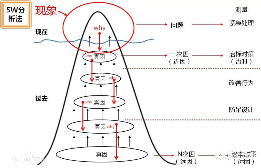 所谓的一万个为什么,就是5why分析法,又称“5问法”,也就是对一个问题点连续以5个“为什么”来自问,以追究其根本原因。虽为5个为什么,但使用时不限定只做“5次为什么的探讨”,主要是必须找到根本原因为止,有时可能只要3次,有时也许要10次,如古话所言:打破砂锅问到底。