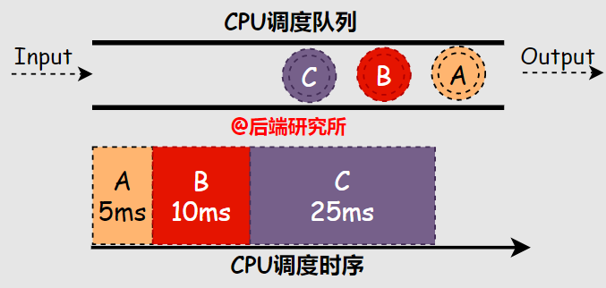 最短任务优先Shortest Job First的思想是当多个进程同时出现时,优先安排执行时间最短的任务,然后是执行时间次短,以此类推。