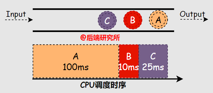 在FCFS中优先被调度的进程如果耗时很长,后续进程都必须要等待这个大CPU消耗的进程,最终导致周转时间直线拉升,也就是护航效应。