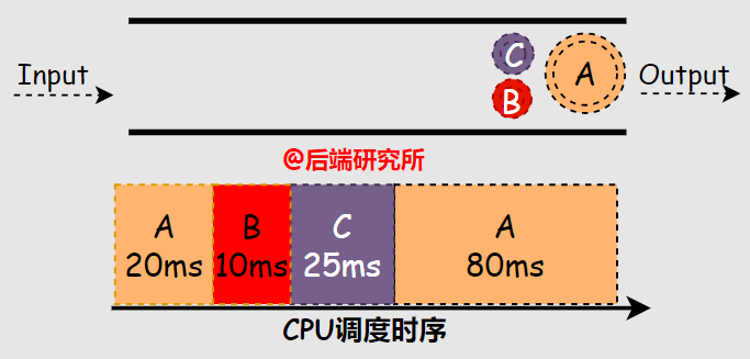 - 假如CPU总时间是10ms,那么根据A占用2.47ms,B占用7.53ms